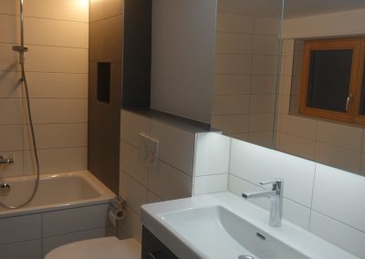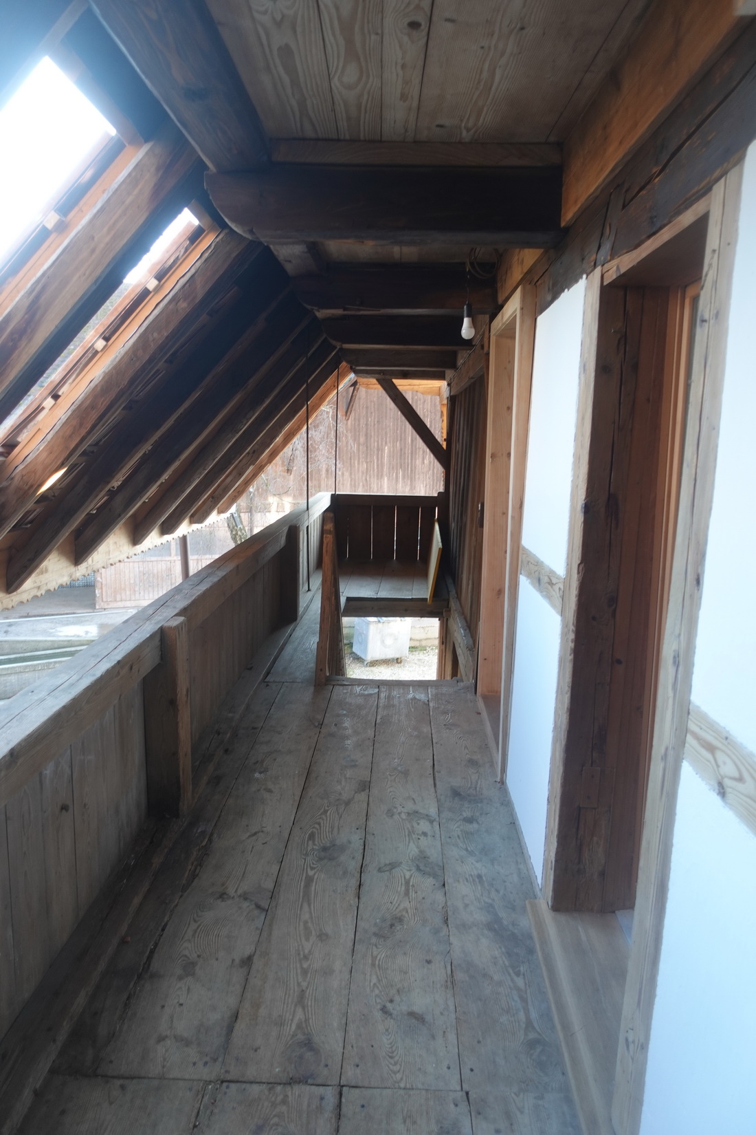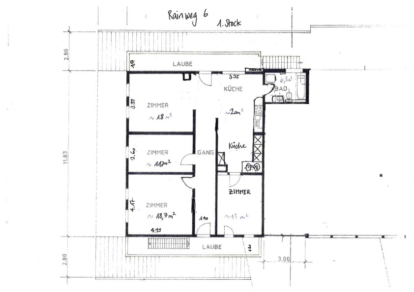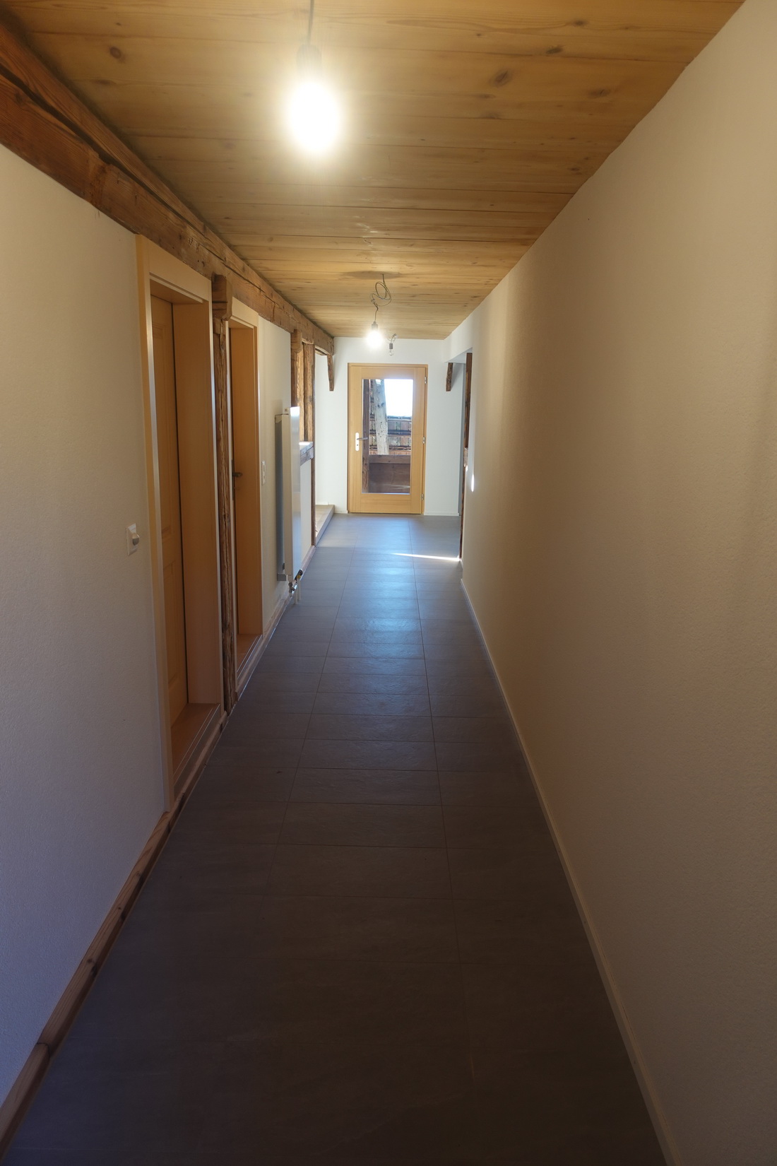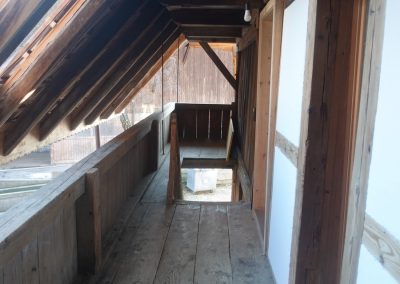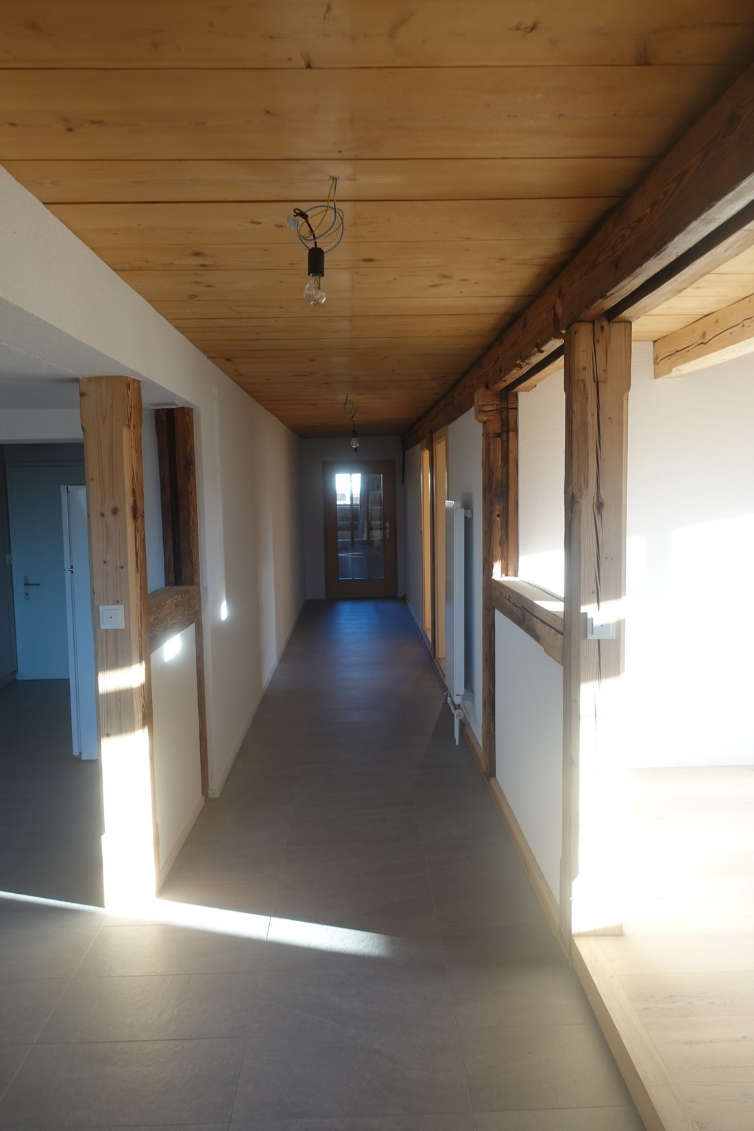 Die zu vermietende Wohnung wurde neu renoviert und verfügt mit den frei gelegten, grösstenteils noch originalen Balken über ein urtümliches Ambiente mit sehr viel Caché. Im 1. Stock befinden sich verteilt auf rund 100 m² 4 Zimmer, eine offene Küche mit Essplatz und das Bad. Drei Zimmer sind mit Eichenparkett ausgestattet, Gang und Küche sind mit Plattenboden versehen. Die exklusiv nutzbare Waschmaschine befindet sich im Bad, ein eigener Tumbler könnte zusätzlich darauf gestapelt werden. Im offenen Bereich zwischen Küche und Wohnzimmer wird aktuel ein Schwedenofen eingebaut.