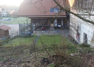 Im Natursteinkeller kann zusätzlich zu den Aufbewahrungs-Regalen auch ein Tiefkühler gestellt werden, Stromanschluss ist vorhanden. Das Estrichzimmer befindet sich neben dem Heuboden. Ein Parkplatz im Freien ist im Mietpreis inbegriffen, ein weiterer Aussenparkplatz oder eine Doppelgarage können dazu gemietet werden.